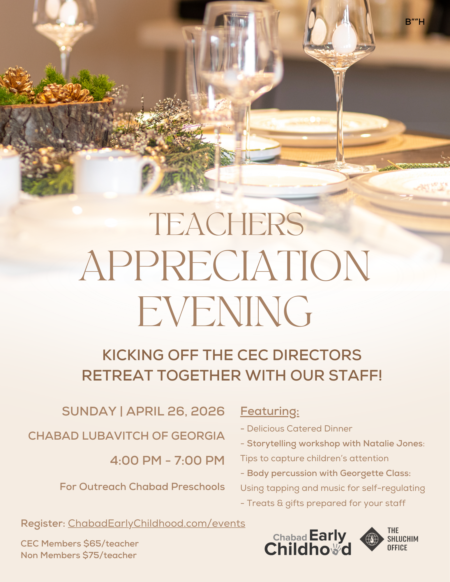 The CEC Annual Directors Retreat will take place at Chabad Lubavitch of Georgia (5065 High Point…