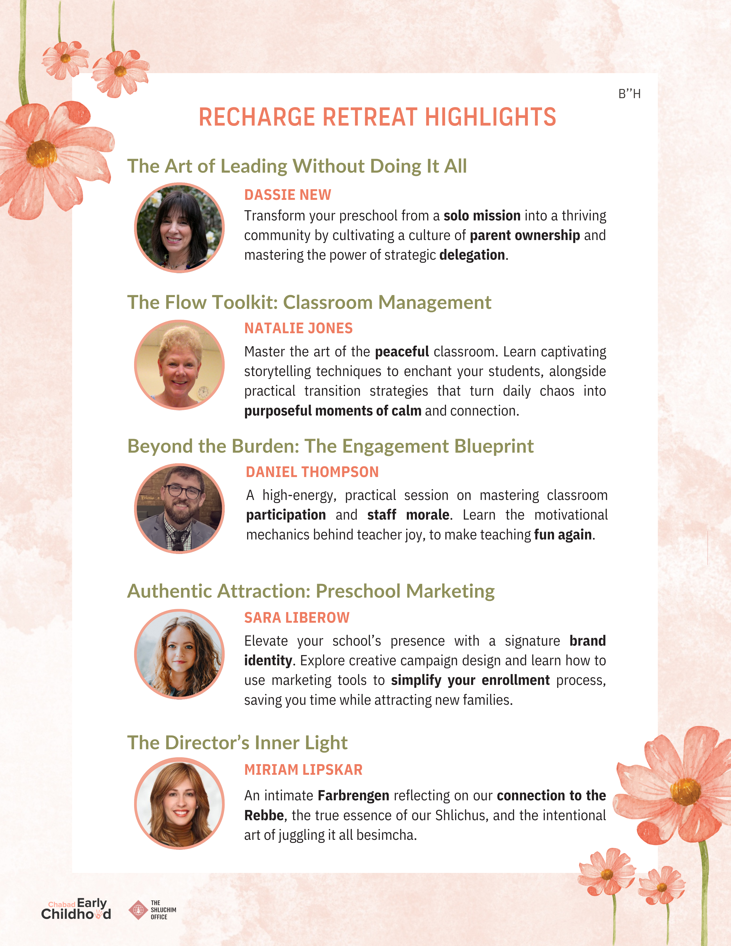 Please note: This program is geared toward Shluchos. If you would like to bring an assistant, please email ceceadmin@shluchim.org for prior approval.
